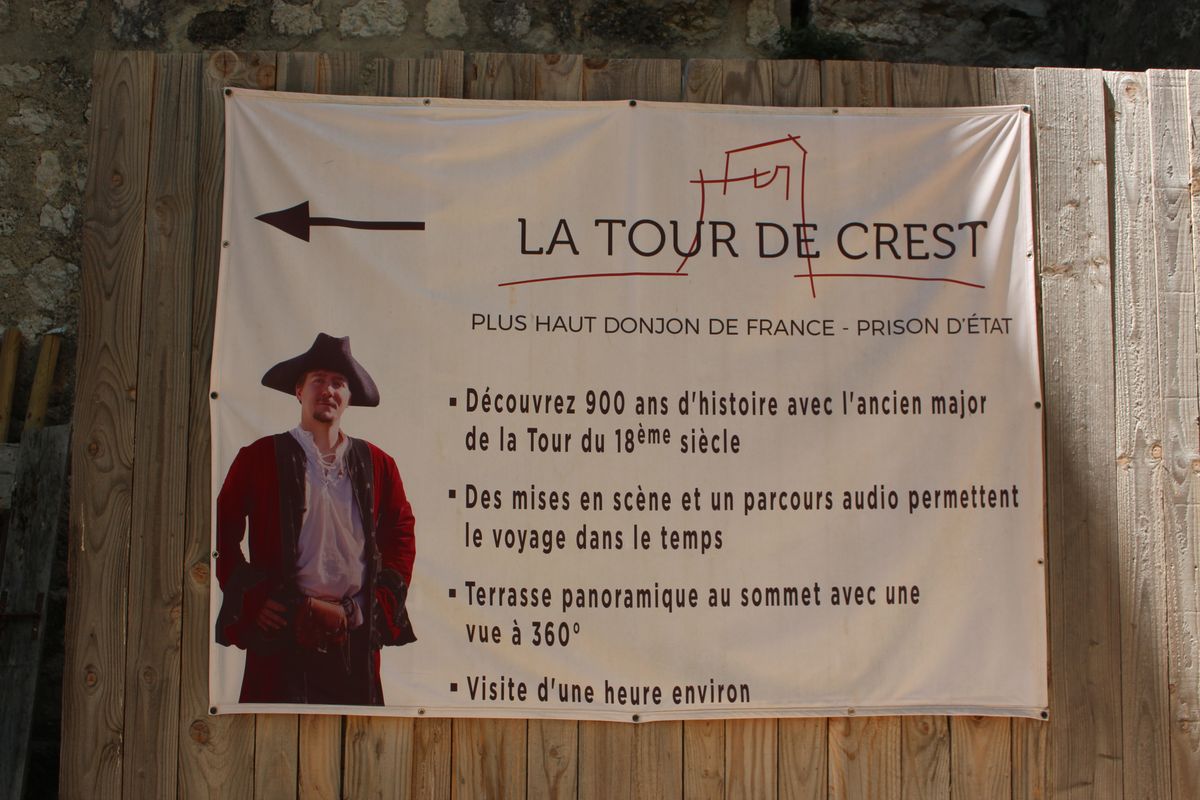 déffaillant et l'operatrice aussi !,,,,, Route vers Crest. On trouve le parking de la Tour , on mange, puis on visite la tour prison féodale, on ne montera pas jusquà la dernière terrasse. |