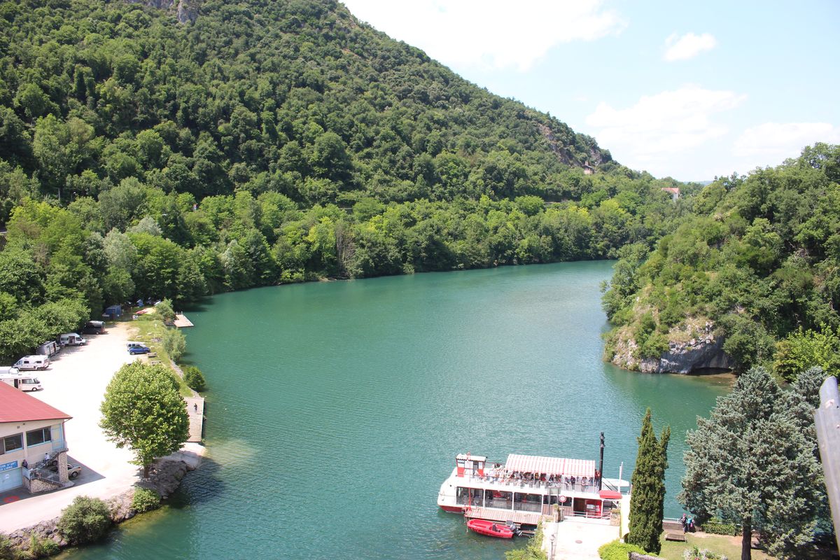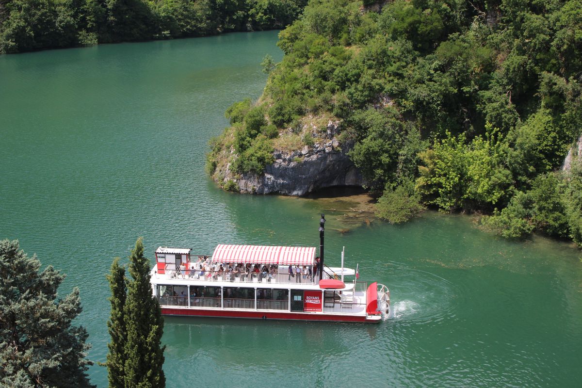 Départ pour Saint-Nazaire-en-Royans, nous sommes en avance, le parking de la Plage est quasiment vide. On débute notre croisière à 10h comme prévu sur le Bateau à Roue « Royans-Vercors » avec sa roue à aubes décorative, il donne à notre croisière un air de Louisiane. Croisière commentée, dans un écrin de verdure, un moment de détente et de découverte entre Saint-Nazaire-en-Royans et le village de La Sône. 1H30 de naviguation et nous voilà de retour au « port» sous laqueduc. Le diaporama de cette croisiere. |