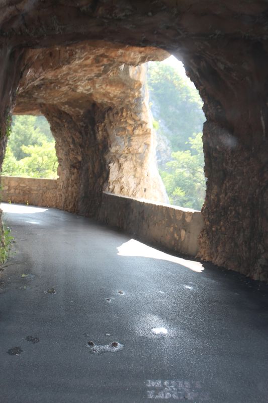 sur la très pittoresque et spectaculaire route de La Combe Laval avec ses tunnels construits dans le rocher, ses passages dans le vide, ses belvédères majestueux qui offrent de splendides points de vues sur le Royannais ! On a croisé deux voitures et beaucoup de motards. |