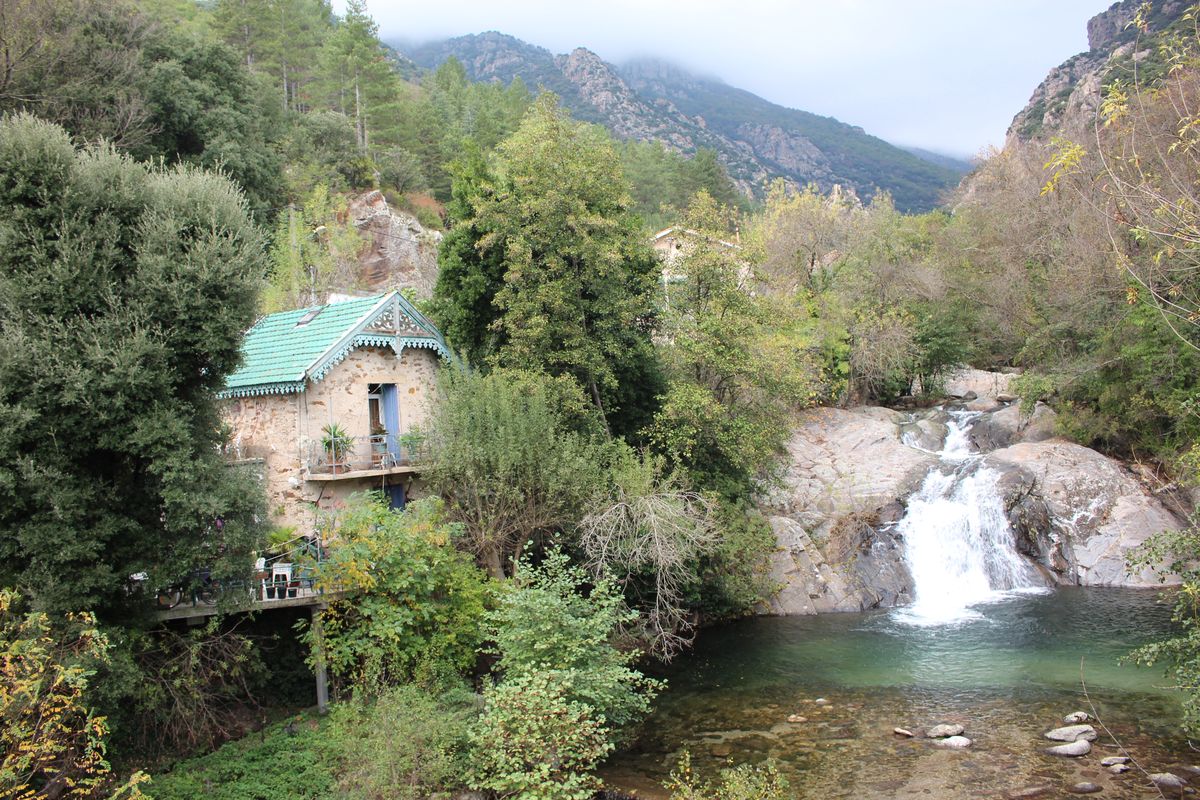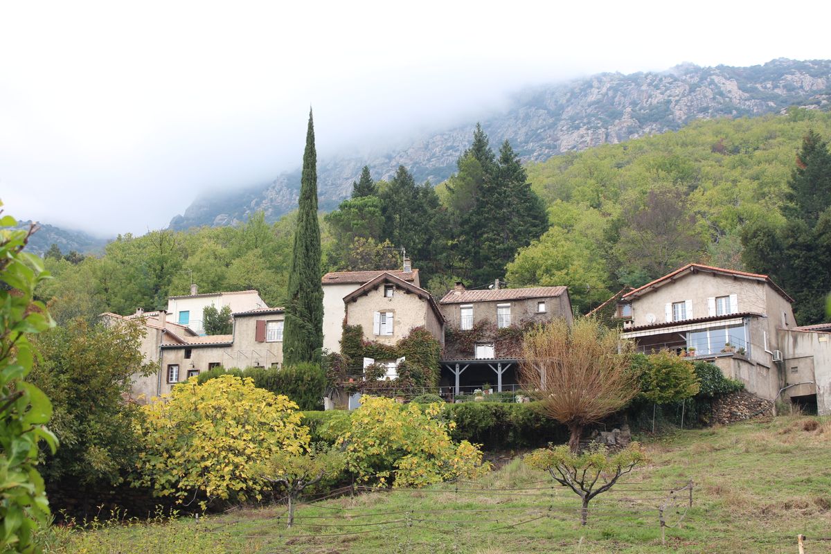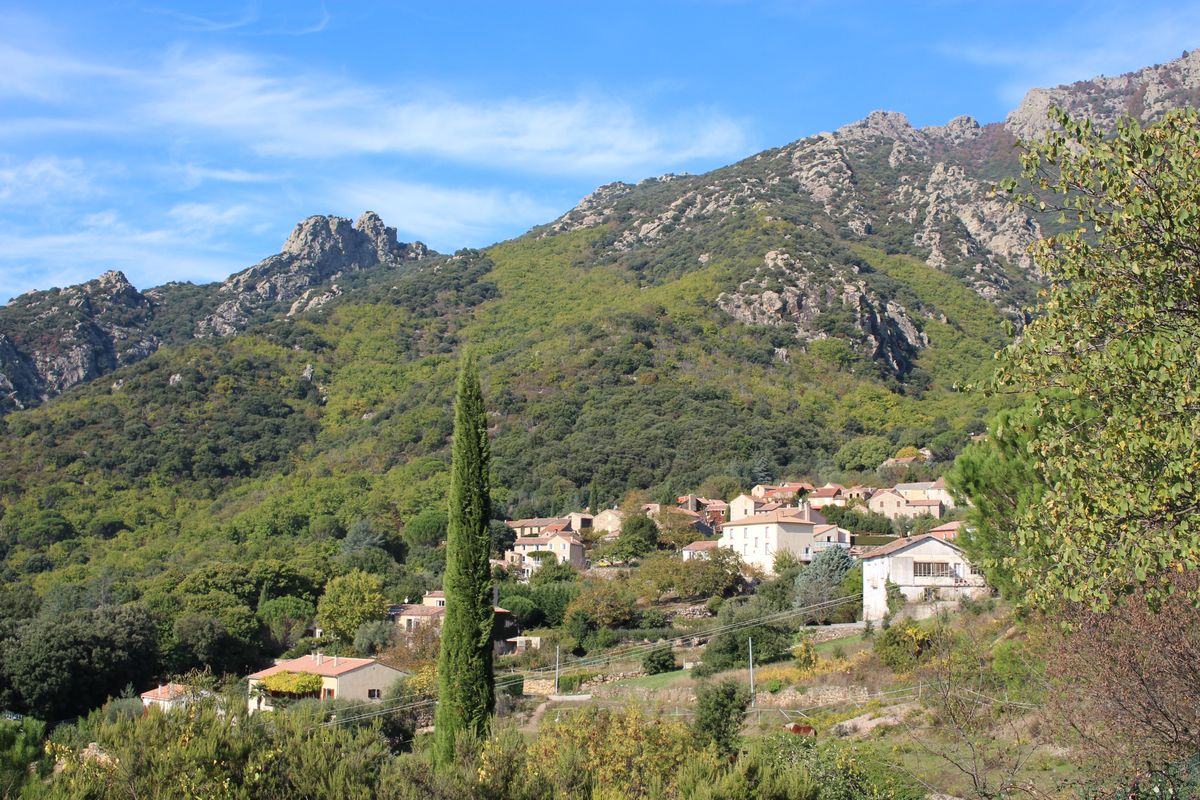 avec ses maisons cévenoles et leurs jardins entourés de