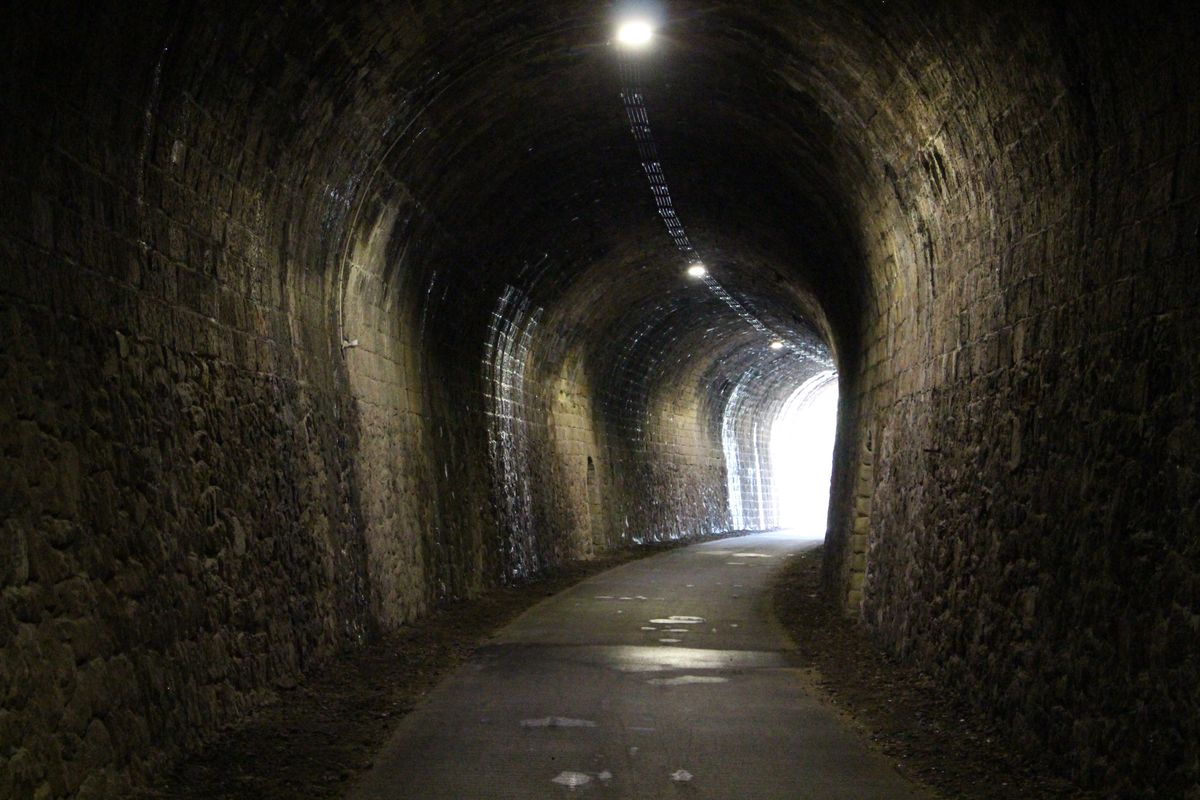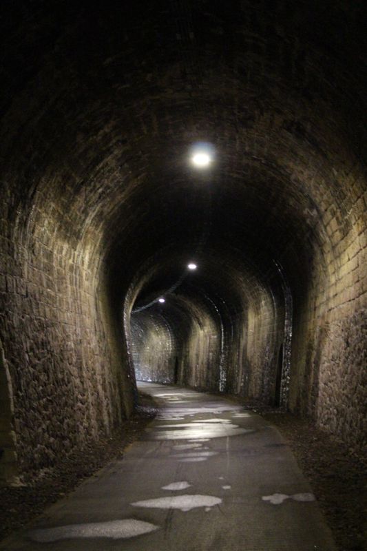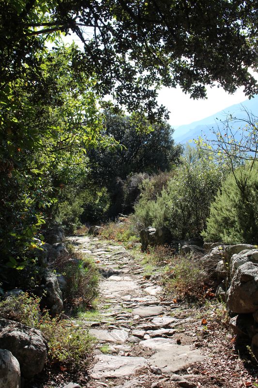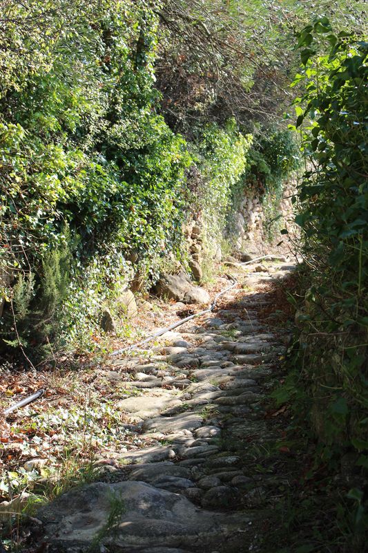 les calades, puis la voie verte Bédarieux-Mazamet avec passage d'un tunnel éclairé et joint les différents hameaux de la commune. |