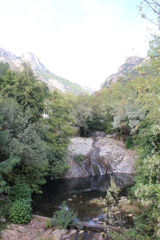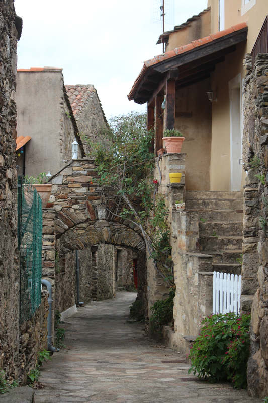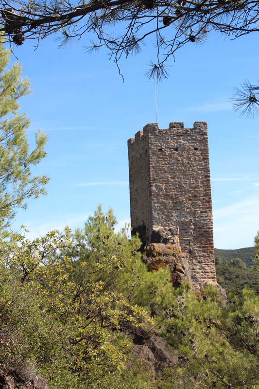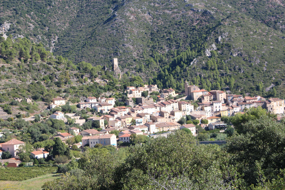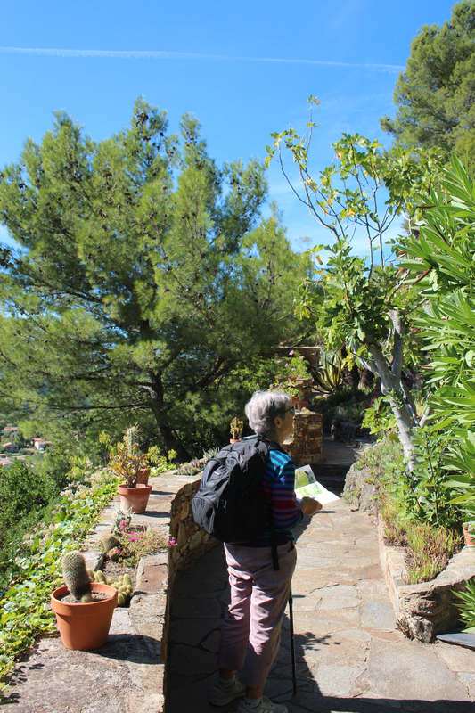Route pour Roquebrun via la vallée de l'Orb puis ses gorges. Parking de la plage, face à la petite ville. Petite randonnée d'une heure trente sur les coteaux presque en face du village, belles vues panoramiques. Après un frugal déjeuner nous prenons d'assaut le village pour nous hisser jusqu'à la tour de guet qui est dans un splendide jardin méditerranéen très fourni. |