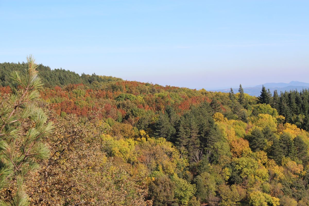la Croix des Baussels . Après les chênes vert, les châtaigniers,