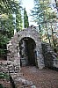 se dresse au bord de l'eau dans un site boisé situé à