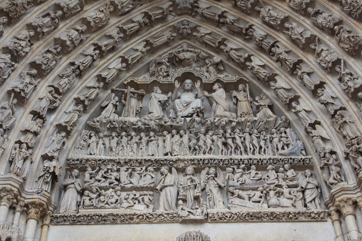 | Le haut relief de saint Firmin, la relique de saint Jean-Baptiste, les 110 stalles de bois sculptées, lange pleureur ou encore la Vierge dorée comptent parmi les principaux chefs-duvre de la cathédrale dAmiens. |