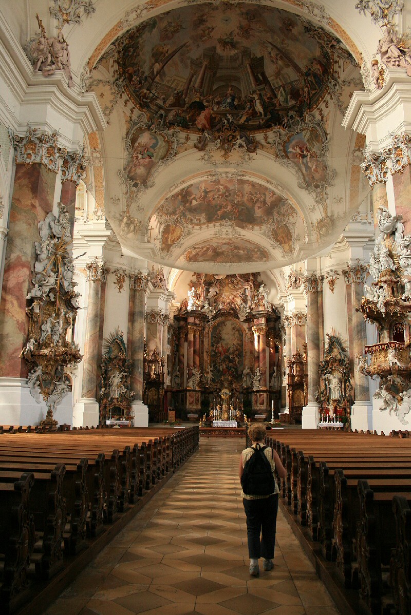 | Fondée en 764, l'abbaye bénédictine d'Ottobeuren qui eut Charlemagne comme protecteur fut transformée dans le style baroque au 18 è s.. Elle est située dans un charmant petit village. | ||||