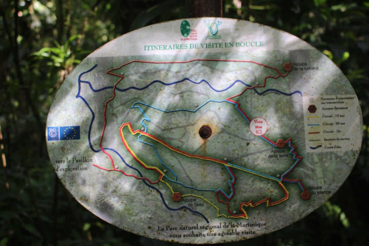 1 Février 2024 LE MORNE ROUGE 35 km en 1h . On fait une halte au DOMAINE DÉMERAUDE le parking est quasiment vide, cest moins prisé des touristes ! Cest un joli parc national très boisé parcouru par trois sentiers. Nous avons fait le bleu (le moyen). Forêt tropicale avec des tulipiers en fleurs. |