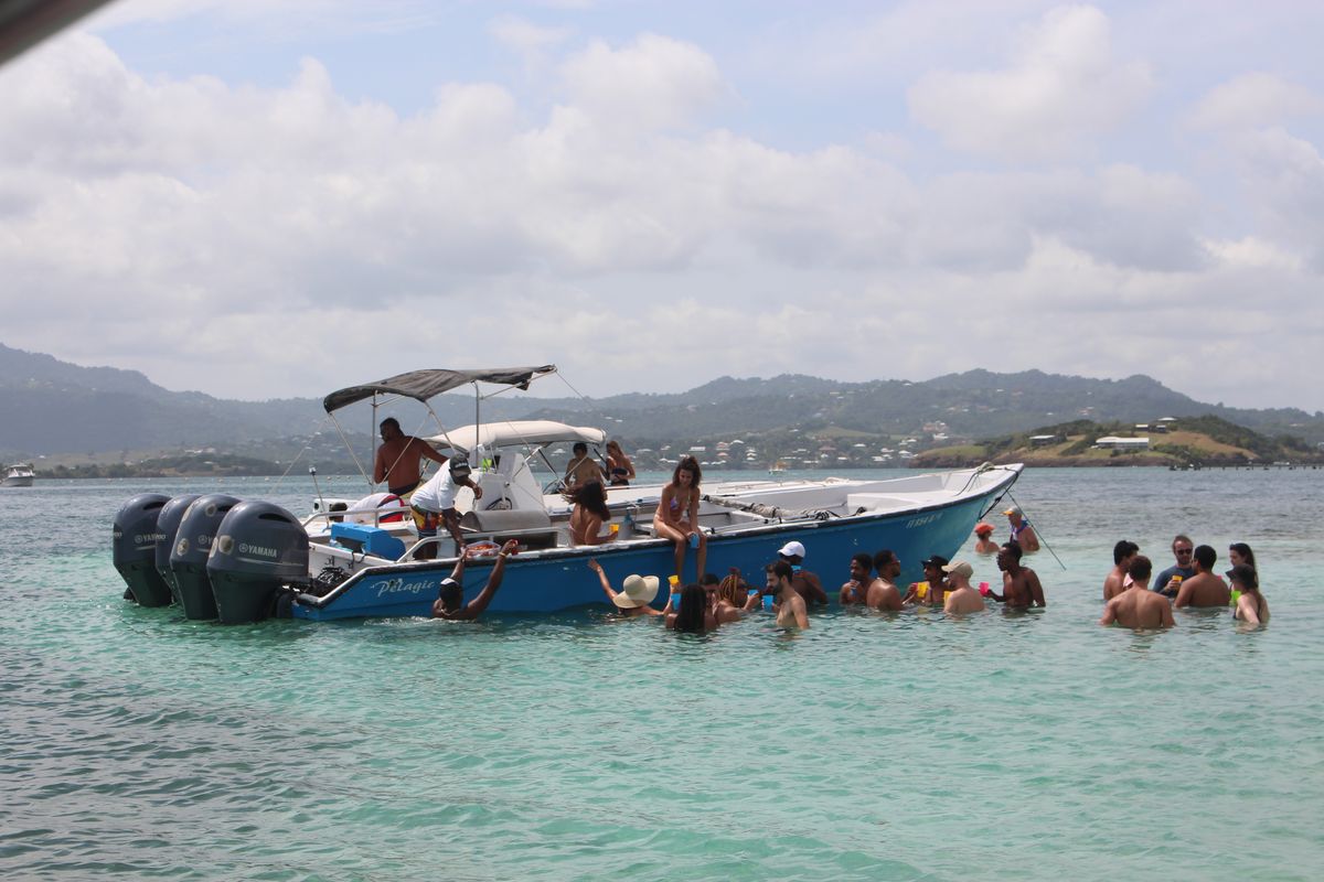 4 Février 2024 Ce matin à 8h le portail automatique ne veut pas souvrir et notre logeuse est absente. Coupure de courant ? Bref, tout se remet en marche et nous arrivons quand même au ponton à lheure prévue, le bateau nest pas encore là ! Nous embarquons à bord de « LAigle Royal » avec pour capitaine Patrice. Première pause dans la baie du Robert pour un briefing sur la baie et la ville, à la vitesse presque supersonique ! Nous passons au large de lîlet Petite Martinique puis nous mettons le cap sur lîlet Chancel. Nous y verrons les vestiges dune petite habitation avec son four à chaux, sa purgerie et non sans mal deux ou trois iguanes, espèce endémique du lieu ! |