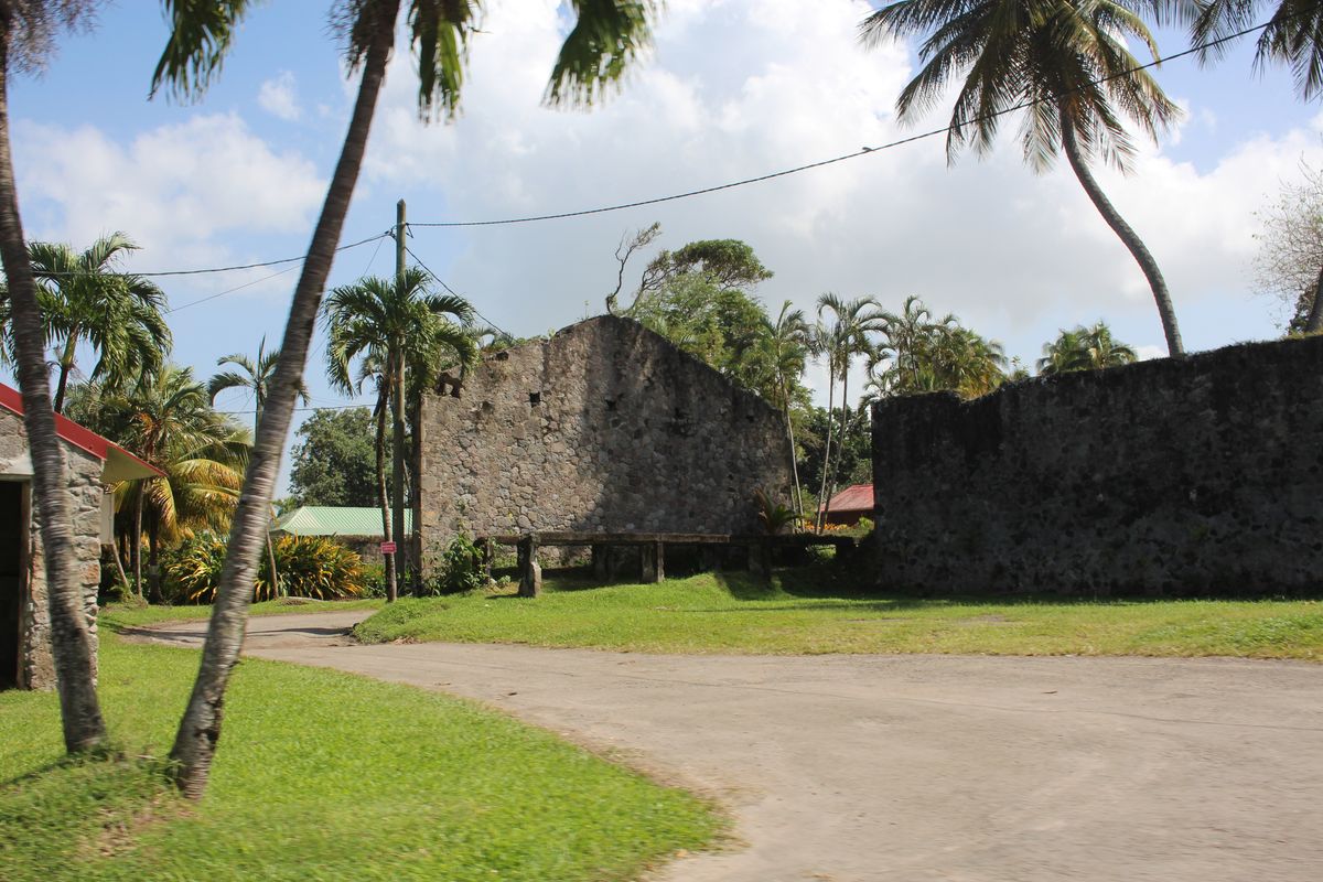 diaporama. On grignotera, face à la mer, des brochettes de poulet avec du riz et des légumes créoles. Pour digérer nous monterons jusquà lancien Fort voir les ruines de léglise de St-Pierre. Retour par la même route au gîte. |