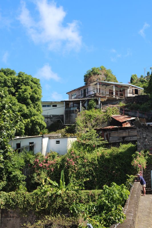 23 janvier 2024 Repérage à la marina du Robert pour faire une excursion vers les îlets avec Ty Domino. Ils ny étaient pas ! On va vers Fond Nicolas pour voir une cascade et un bassin mais on ne verra rien : un taureau très en forme .. barre le sentier ! On fait quelques achats pour un pique-nique puis on va visiter LHABITATION CLÉMENT. Vaste domaine du planteur (sucrier) avec la grande maison du maître, cases des esclaves, distillerie, sucrerie, le tout dans un splendide parc entouré de bananiers et bien sûr de cannes à sucre. |