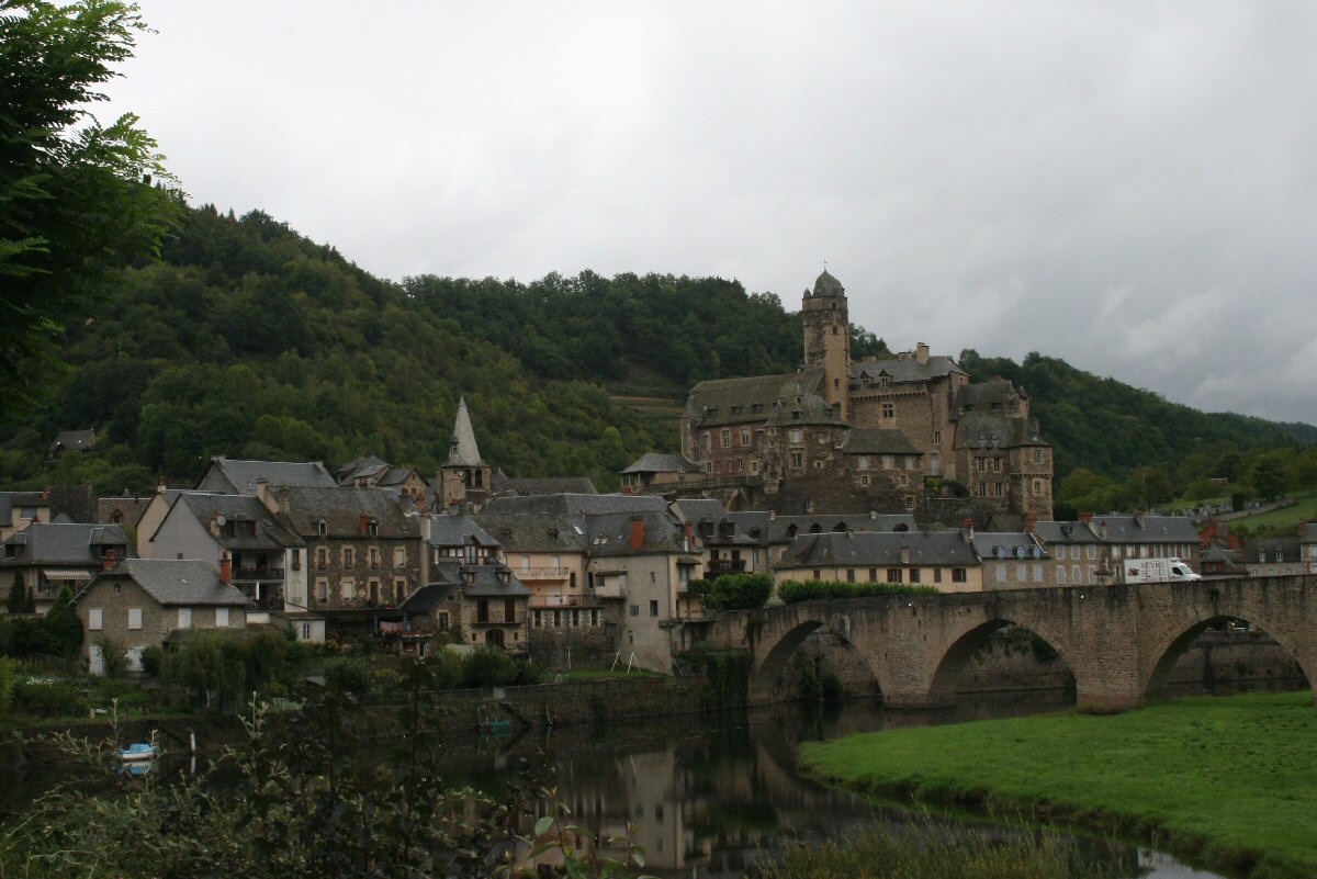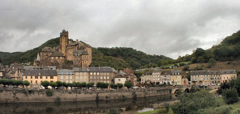 A 9 heures on décolle de la maison, direction Villefranche de Rouergue, Rodez, puis Séverac-le-Château, Espalion, Estaingoù on déjeune (avec la pluie et le froid-on a allumé le chauffage du fourgon en roulant) puis on visite la ville à la faveur d'une éclaircie. Nous longeons la vallée du Lot jusqu'à Entraygues sur Truyère qu'on ne visite pas puisque nous l'avons déjà fait par le passé. |