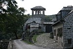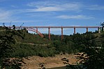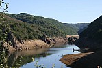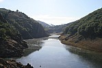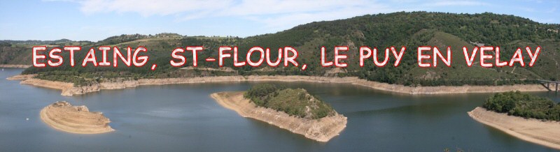 gorges de la Truyère. D'abord le barrage de Sarrans puis le hameau de Laussac bâti sur un promontoire et que l'immersion de la vallée a transformé en presqu'île. Nous passons devant le belvédère du Vezou sans le voir ! Pont de Trébouls, ouvrage suspendu moderne de 159 m de long. Il remplace un pont gothique construit par les Anglais au 14°s. et submergé par la retenue en même temps que le village de Tréboul. |