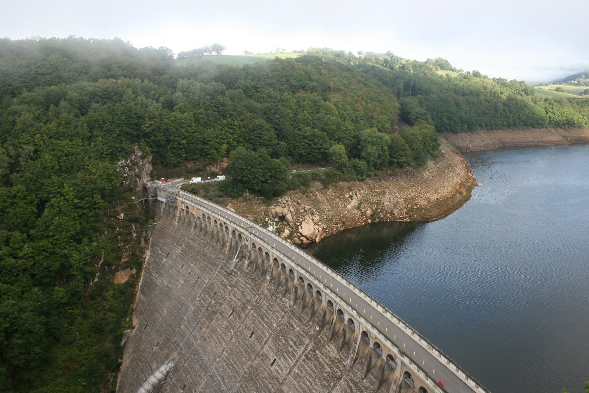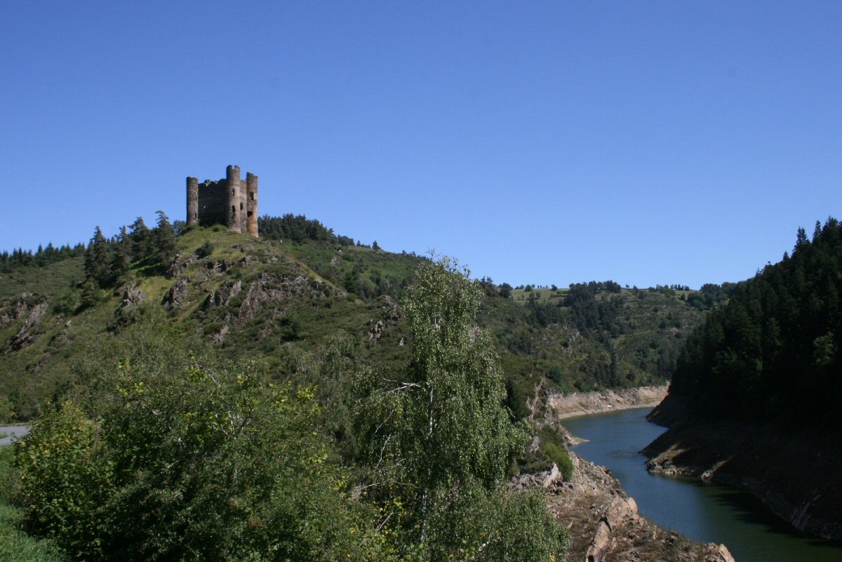 d'Alleuze. Le Château d'Alleuze est un château fort au plan caractéristique des édifices construits au XIVe siècle : un plan carré, flanqué aux angles de tours rondes. Après sa destruction en 1405 par les habitants de Saint-Flour afin de mettre fin à la terreur du seigneur de Garlan et de ses successeurs éventuels, il fut rebâti en 1411 sur le même plan. Petit retour en arrière pour traverser la Truyère, mais cette fois sur le barrage de Grandval. Le barrage de Grandval a été réalisé entre 1955 et 1960. Sa mise en eau a débuté en 1959 et a abouti à la création d'une retenue sur une longueur de 28 km d'une surface de 1100 ha qui a englouti les villages de Mallet et de Magnac. Classé dans la catégorie "Lac", le barrage de Grandval a une productivité moyenne annuelle de 125 GWH. Depuis 1982, il est télécommandé du poste de commande hydraulique de Brive. |
