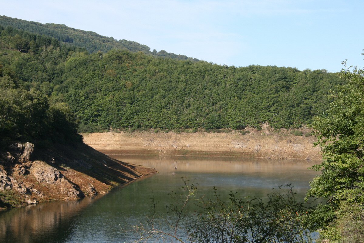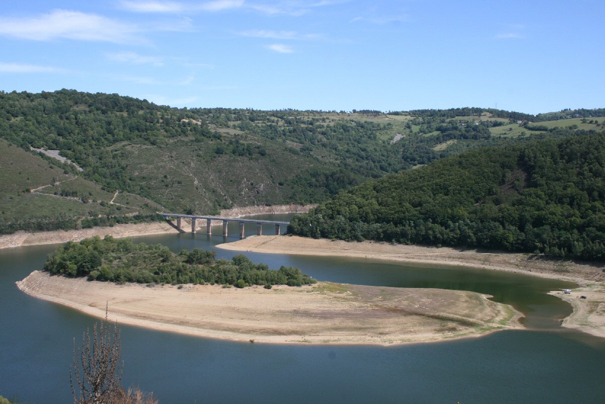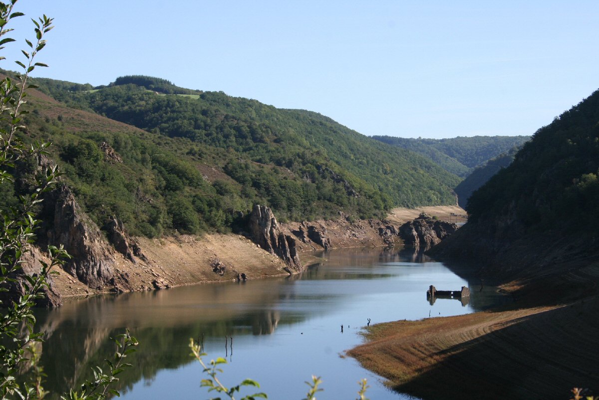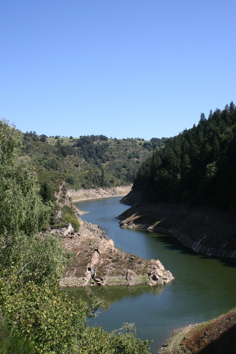 les belles vues sur la retenue de Grandval avec les deux îlots rocheux