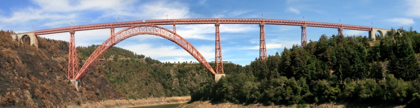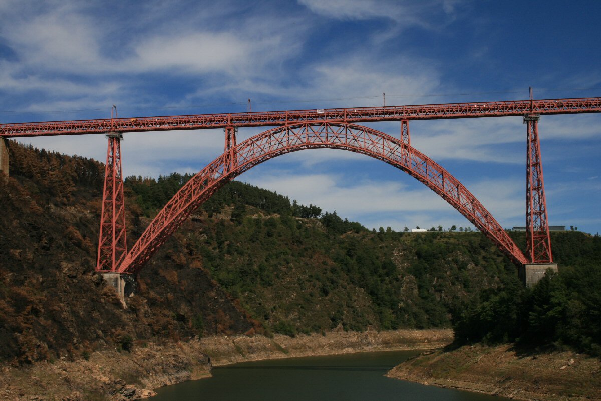 | La route traverse l'Arcomie, affluent de la Truyère, noyé aux plus hautes eaux de la retenue du barrage de Grandval. Du pont et des lacets qui précédent celui-ci on peut admirer le viaduc de Garabit. Il a permis de relier enfin, par voie ferrée Clermont et Béziers. C'est une uvre élégante et audacieuse dont les plans sont dus à L. Boyer et la construction à G. Eiffel. | |||||