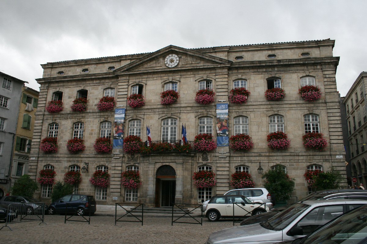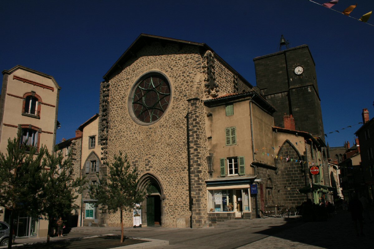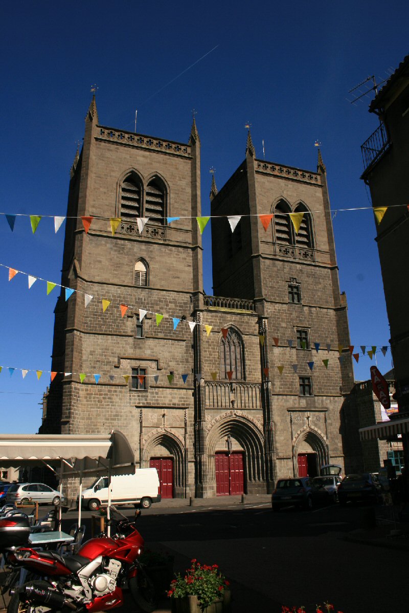commémoratif. Nous commençons la visite. La Cathédrale se dresse sur la vaste place d'Armes. C'est un édifice de style gothique construit en pierre de lave noire de Lioargues. A l'intérieur les cinq nefs frappent par la sobriété de leurs lignes. Sous la tribune d'orgues, une peinture murale du 15ème s. représente le purgatoire et l'enfer. A l'entrée du Chur on peut admirer un grand Christ noir en bois. Derrière le chevet de la cathédrale, depuis les terrasses des roches, on a de beaux points de vue sur la ville basse, la vallée de l'Ander et les monts de la Margeride. L'ancienne maison consulaire abrite le musée d'Art et d'Histoire Alfred-Drouet. Promenade dans les rues pittoresques et anciennes. |