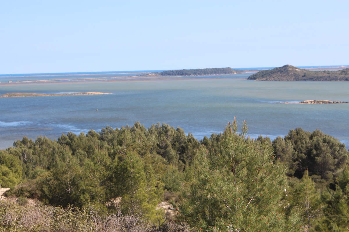 point de vue sur la Plage des Coussoules, les salins de La Palme et,