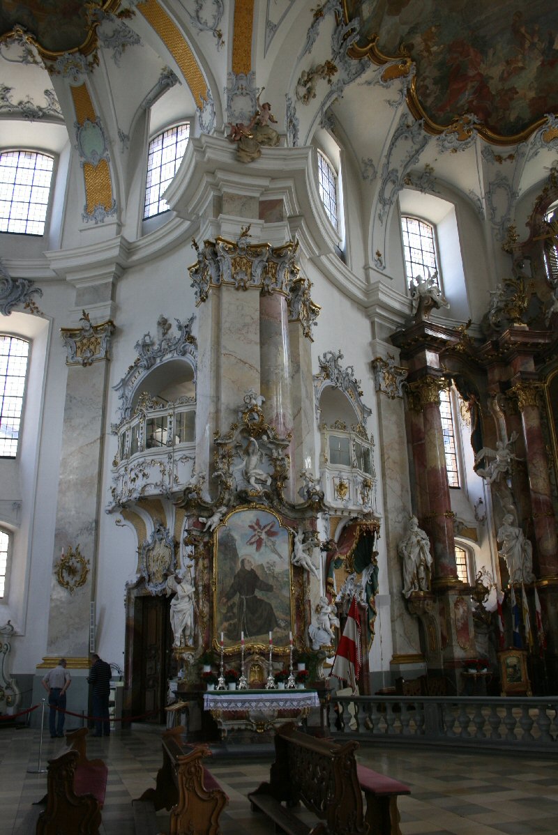 L'interieur avec sa précieuse décoration rococo est étonnante et surprenante