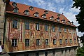 l'hôtel de ville proprement dit aux façades peintes à fresques, une porte
