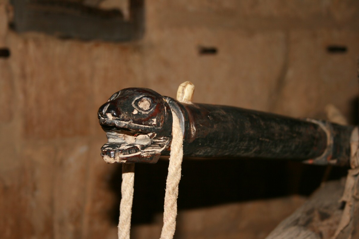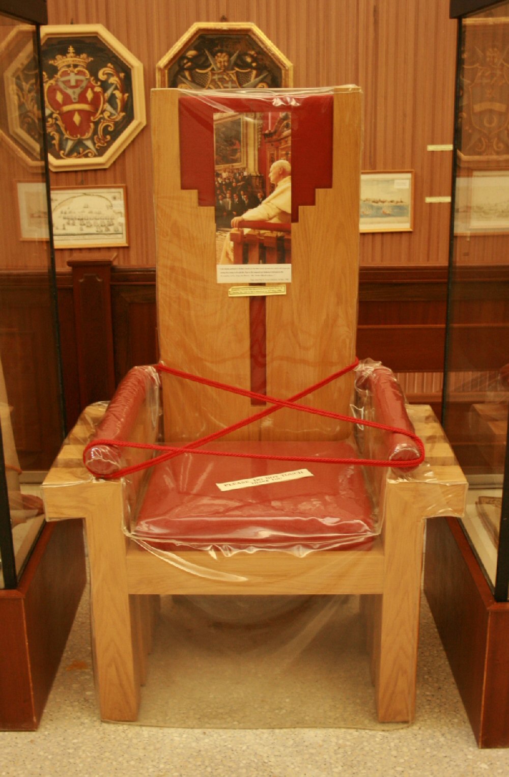 une collection d'objets religieux, en particulier le fauteuil utilisé