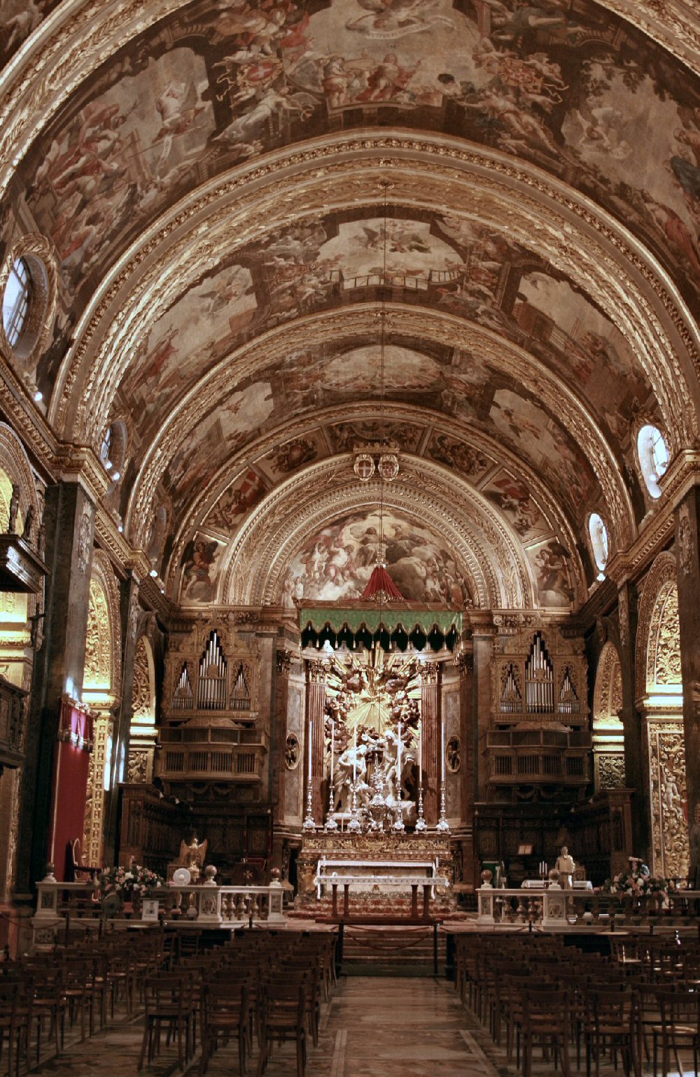 Autrefois église conventuelle de l' Ordre, la cathédrale Saint Jean est, du point de vue historique, l'un des monuments les plus importants de l'archipel. Elle est l 'oeuvre de Girolamu Cassar, architecte maltais qui travailla aux fortifications de La Valette. Les travaux débutèrent en 1573 et se terminèrent en 1577. C’est en 1816 que l’église fut promue cathédrale par le pape. Elle partagea ce titre avec la cathédrale de Mdina, d’où l’appellation de Co-Cathédrale. Elle fut financée par le Grand Maître français Jean L'Evesque de la Cassière. |