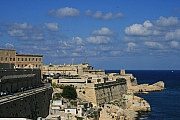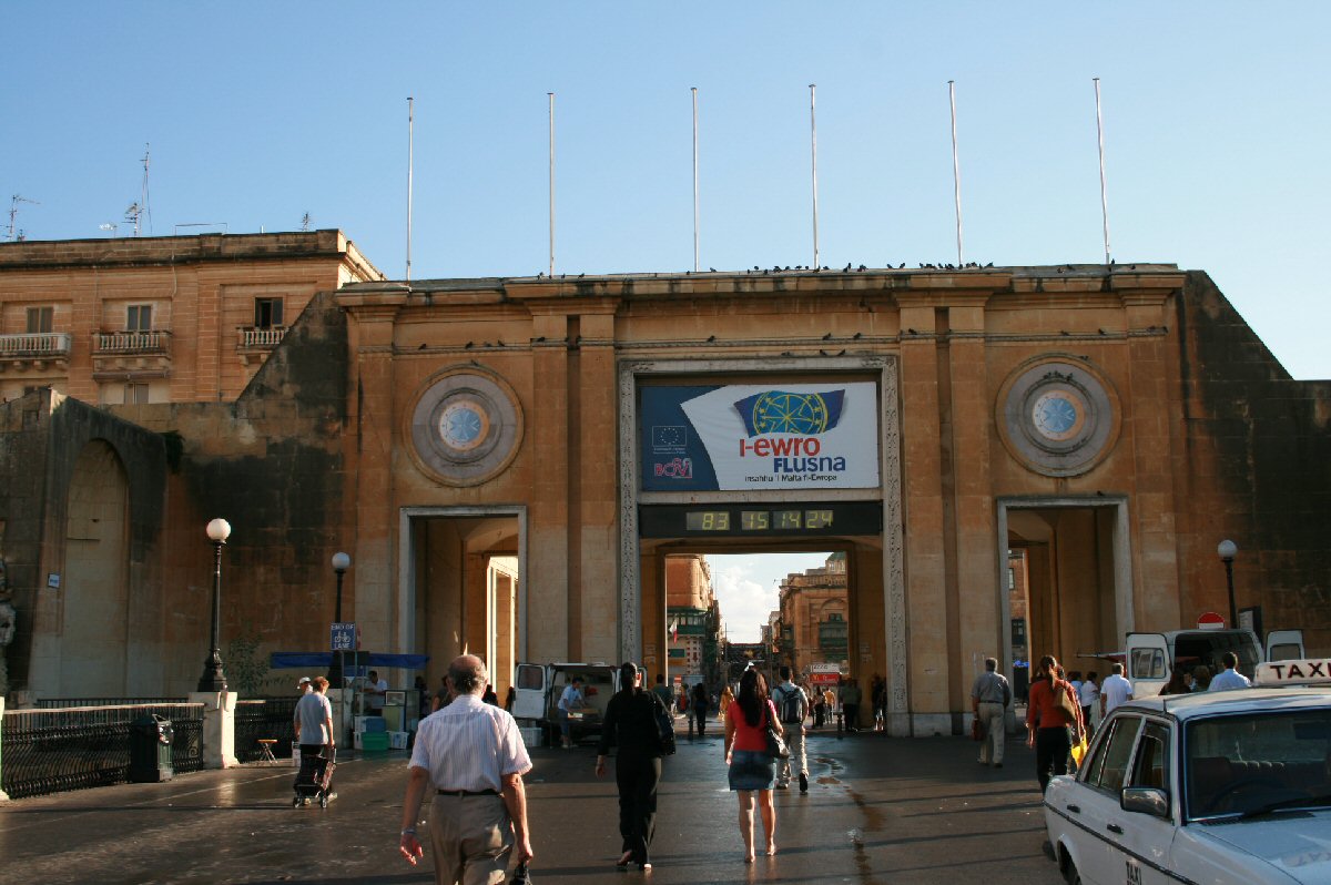 L'entrée dans la citadelle débute d'abord par la Fontaine du Triton, très grande place, terminal de tous les bus de Malte avec au centre une fontaine puis par une note anachronique : City Gate, immense arche en marbre de style mussolinien, pur exemple d'architecture fasciste ! construite par un architecte italien ami du Duce ... Qu'importe si quelques années plus tôt La Valette fut assiégée par l'Allemagne nazie ! |