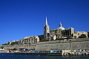 Le port de Marsamxett. Sur le quai en contre bas du Bastion de St Andrew's se trouve l'embarcadère qui permet de gagner Sliema en 10 minutes environ. Encore de jolies vues sur le port, Sliema et les remparts. |