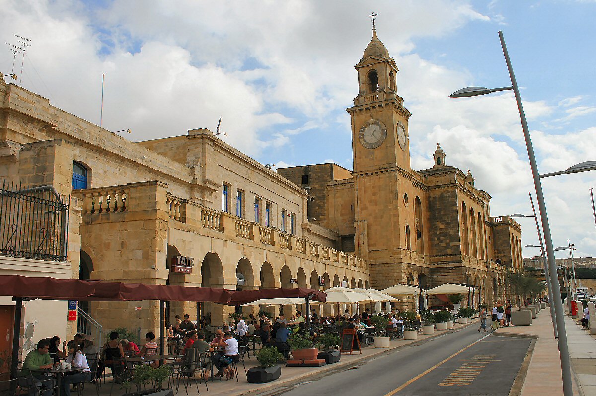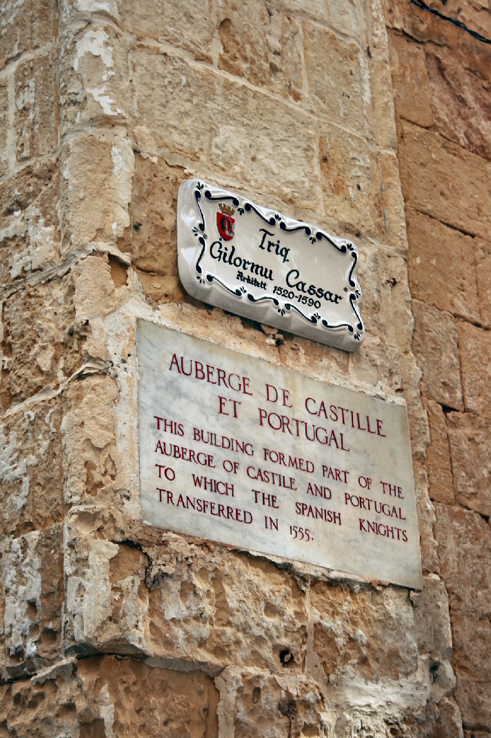 Mishra ir Rehba. Pour trouver les autres auberges il faut entrer dans Triq Hilda Tabone et dans le lacis des ruelles qui courent derrière. À la première intersection s'élèvent les auberges de Provence et d'Auvergne reconnaissables aux fenêtres encadrées de moulures. On repère l'auberge d'Angleterre à son balcon d'apparat. Dans Triqil-Maggistral subsiste une maison d'époque normande dont la baie géminée est soulignée d'un décor végétal. L'auberge de Castille et du Portugal conserve un imposant pilastre d'angle. Plus haut s'élève le premier hôpital civil construit par l'Ordre en 1660. |