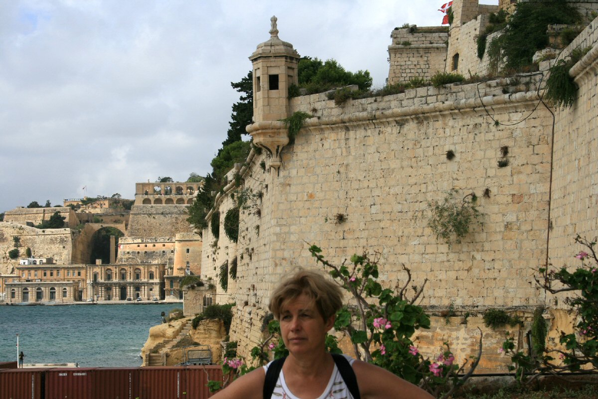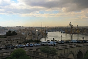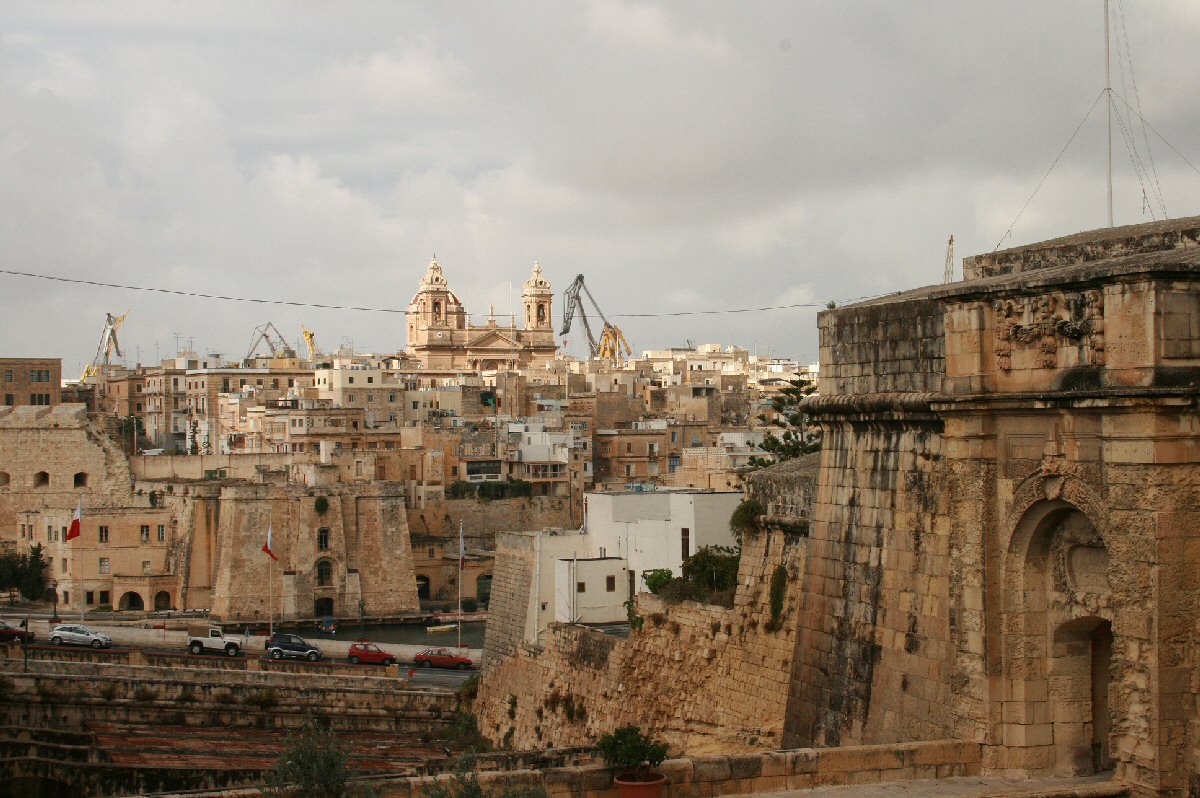| Depuis La Valette il faut faire un long détour en bus, à travers les faubourgs industriels de Paola et le long de la sinistre prison, pour retrouver le système défensif qui complète celui de La Valette : la mâ choire Est de Grand Harbour. |
