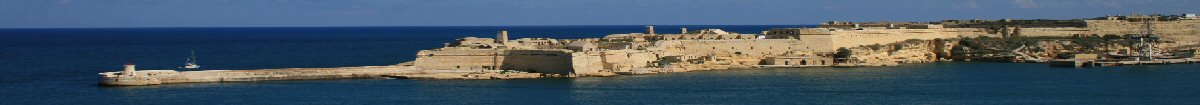 Le rempart qui défend Vittoriosa est bien moins élevé que celui de La Valette, mais donne bien le sentiment de pénétrer dans une forteresse bien gardée, avec les redoutes de St Johjn's Cavalier et du Poste de France qui veillent sur la porte de Provence. À l'autre extrèmité, le fort Saint Ange, ancienne résidence de l'Ordre servit de quartier général à la Royal Navy pendant la seconde guerre mondiale.. Vu son état actuel de délabrement, il ne se visite plus. Le panaroma à 180° sera fortement réduit !.. |