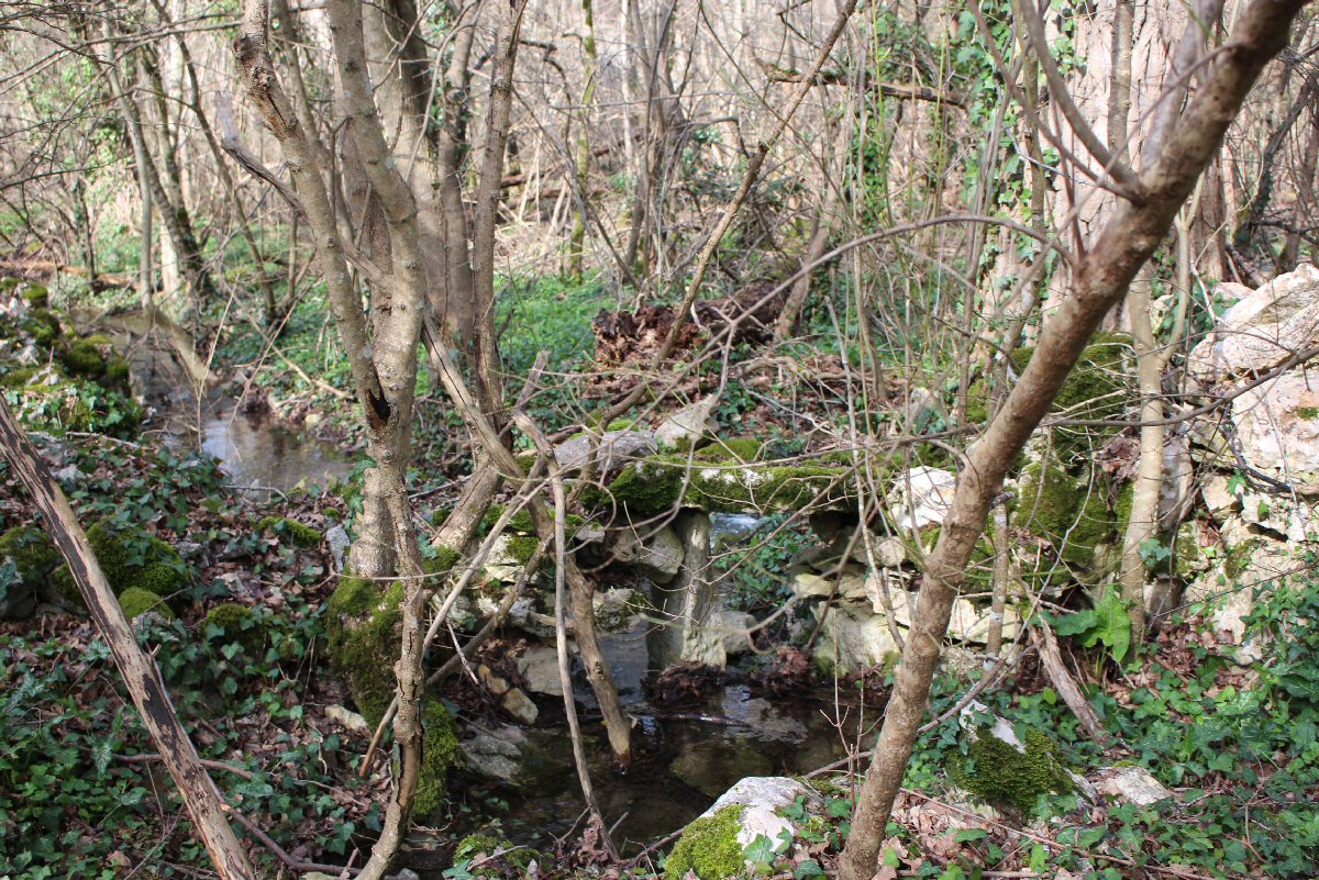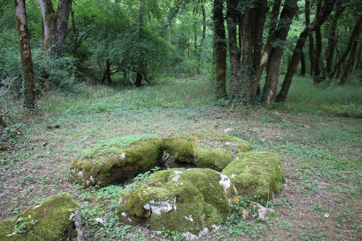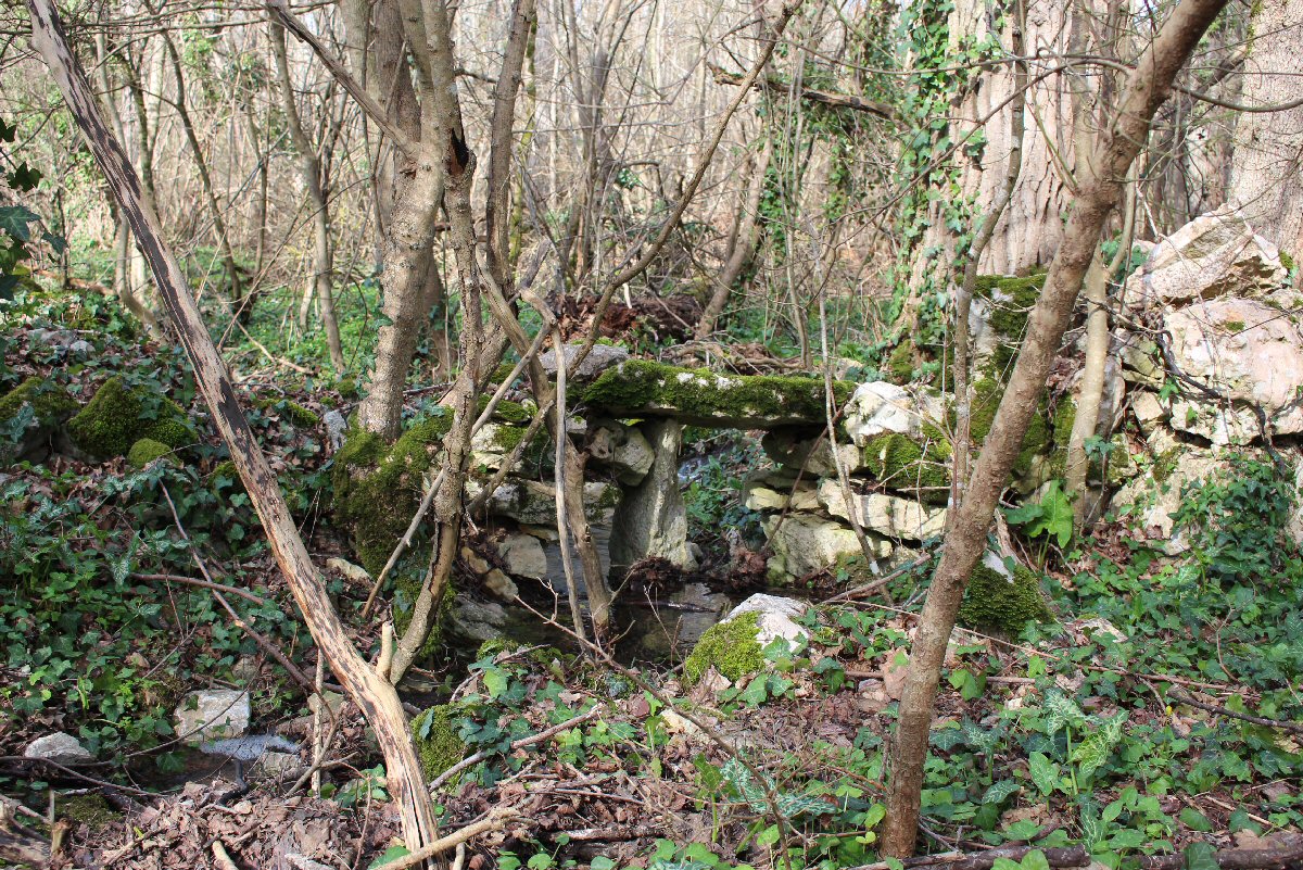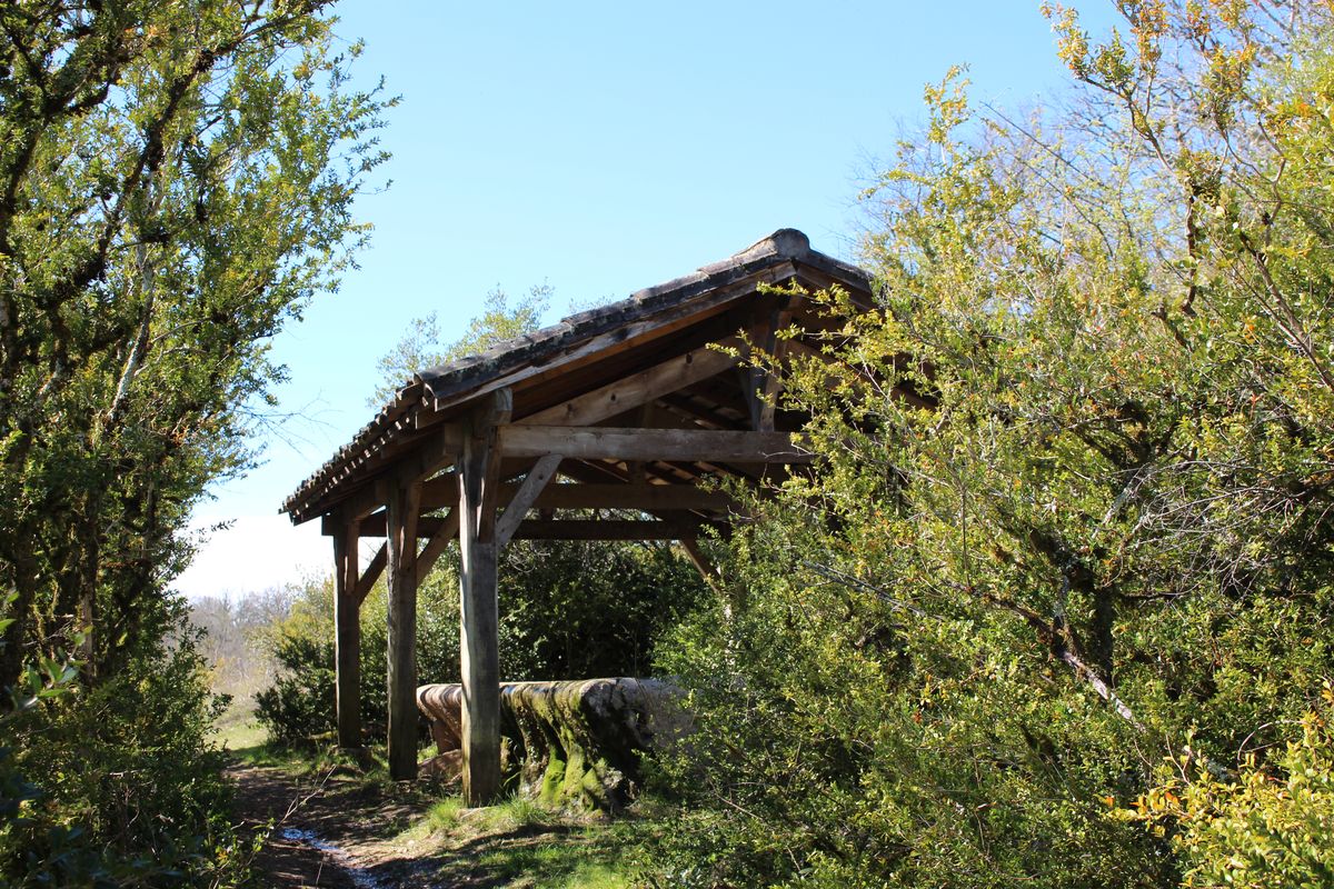 une source (à sec) aménagée. On arrive sur une route,