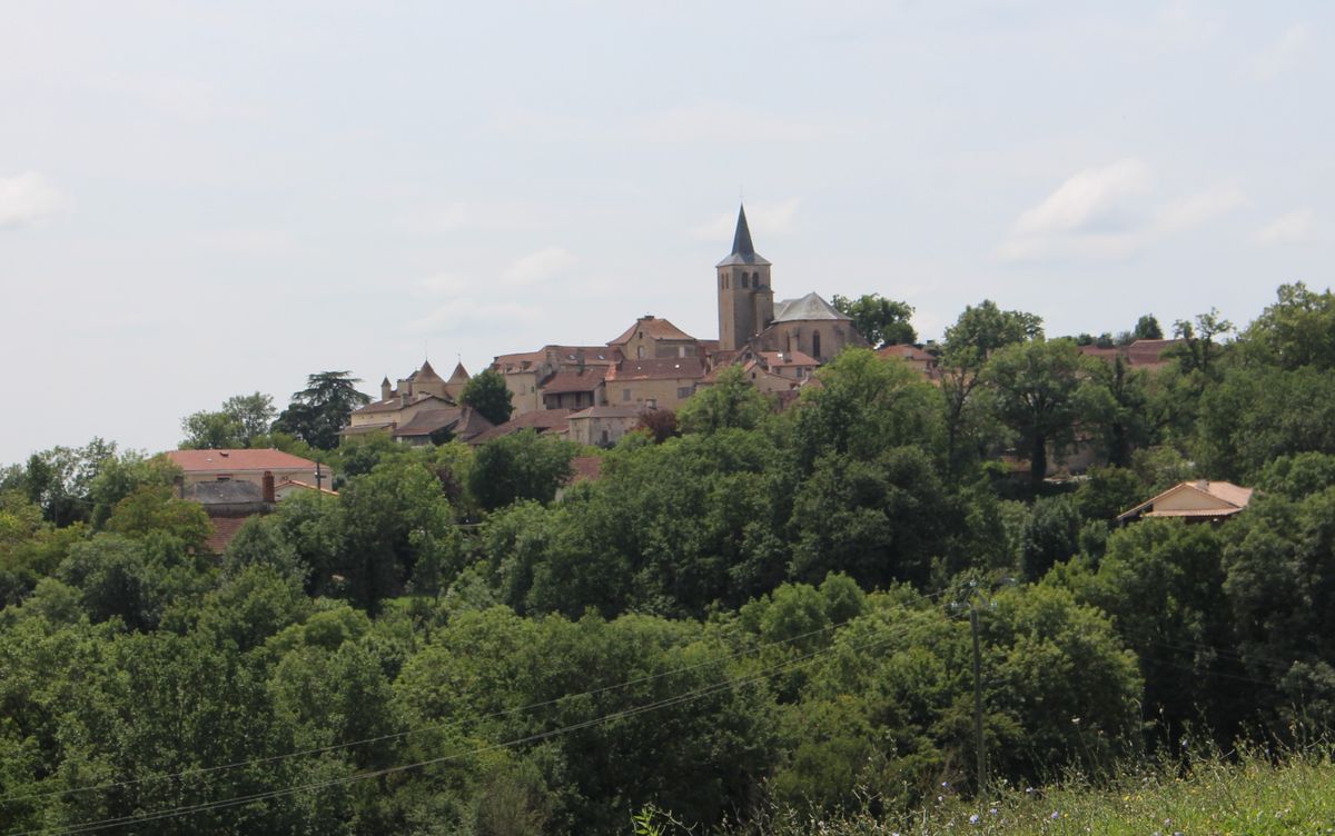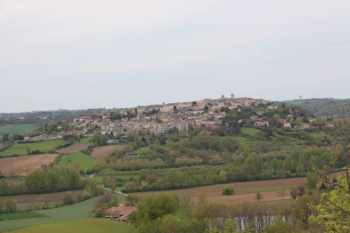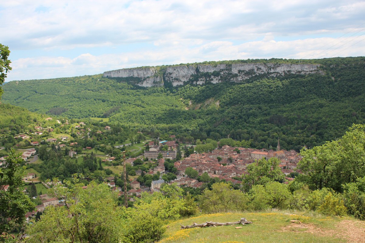 vue panoramique de Caylus (grande croix) pour une balade de Burguet, Genebrières