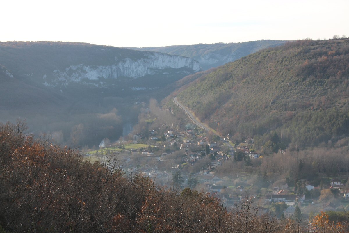 sur les gorges de l'Aveyron. La descente vers le lotissement de Rodanèze