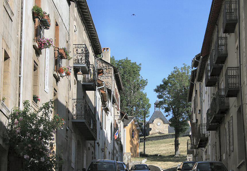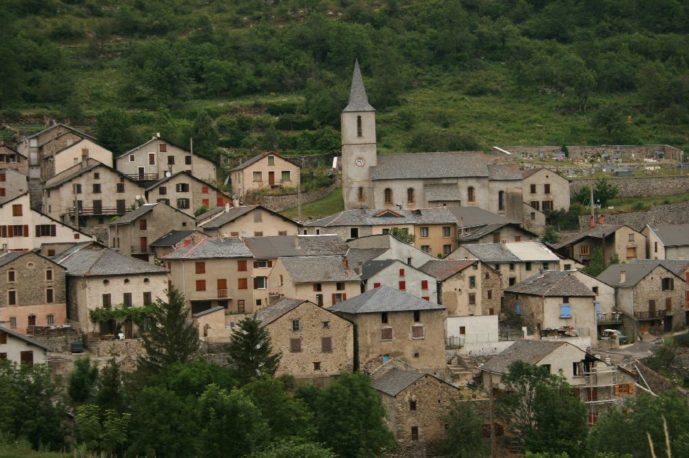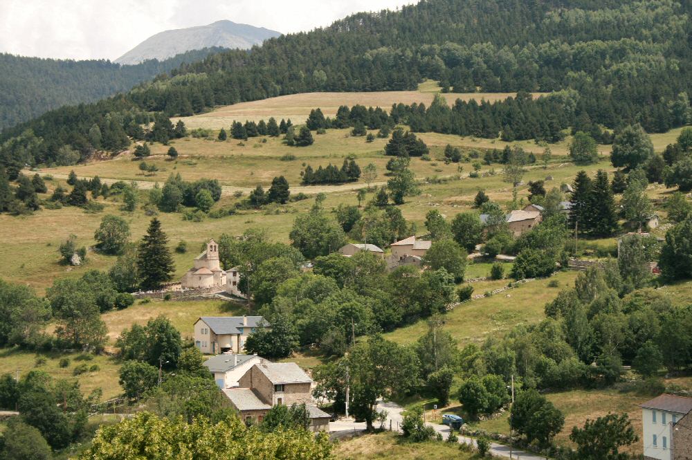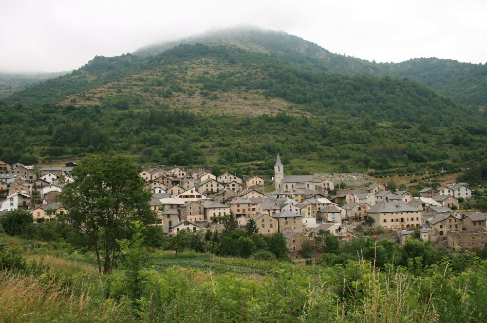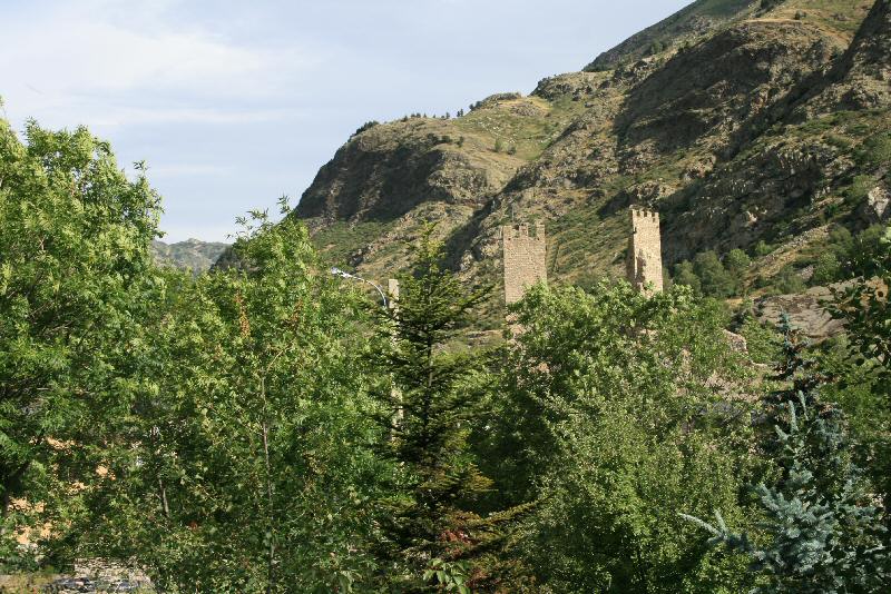 vues à gauche sur le hameau de Carol avec ses deux tours en ruine.