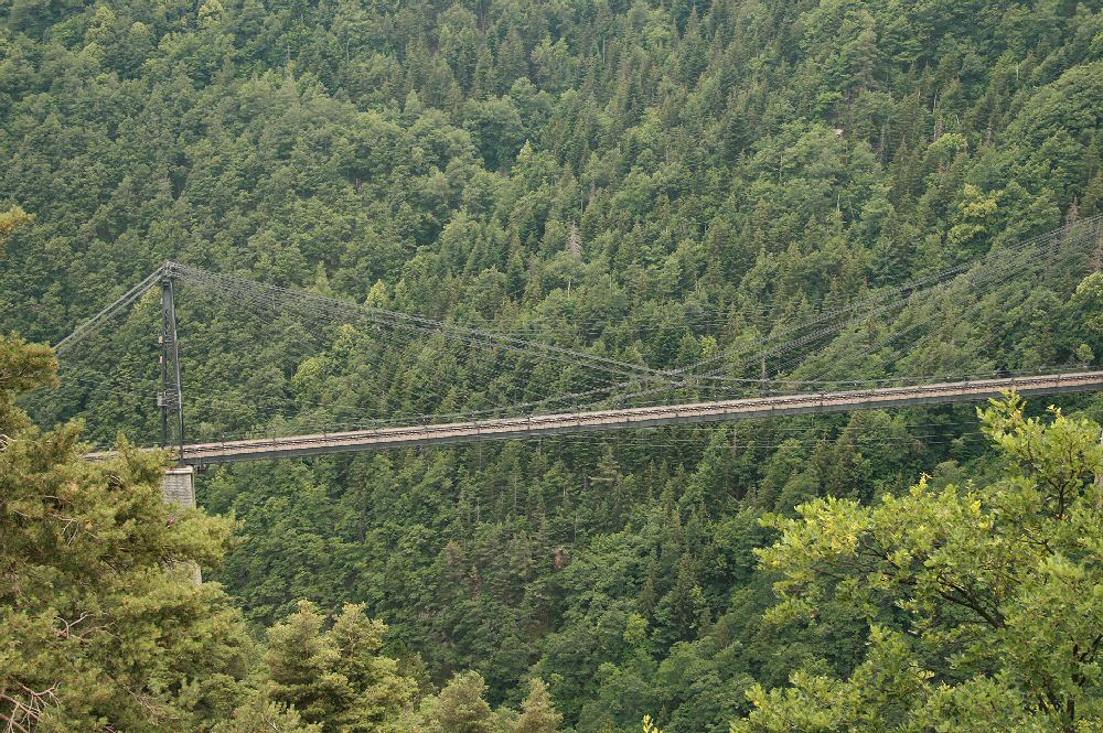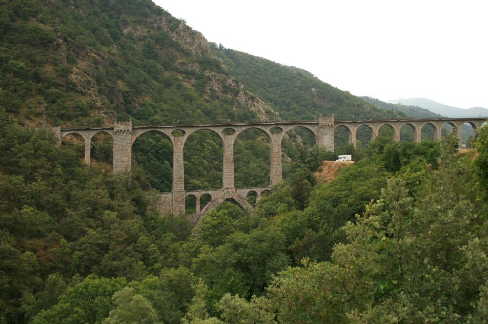 Olette empruntant le pont Giscard et le Viaduc Séjourné. |